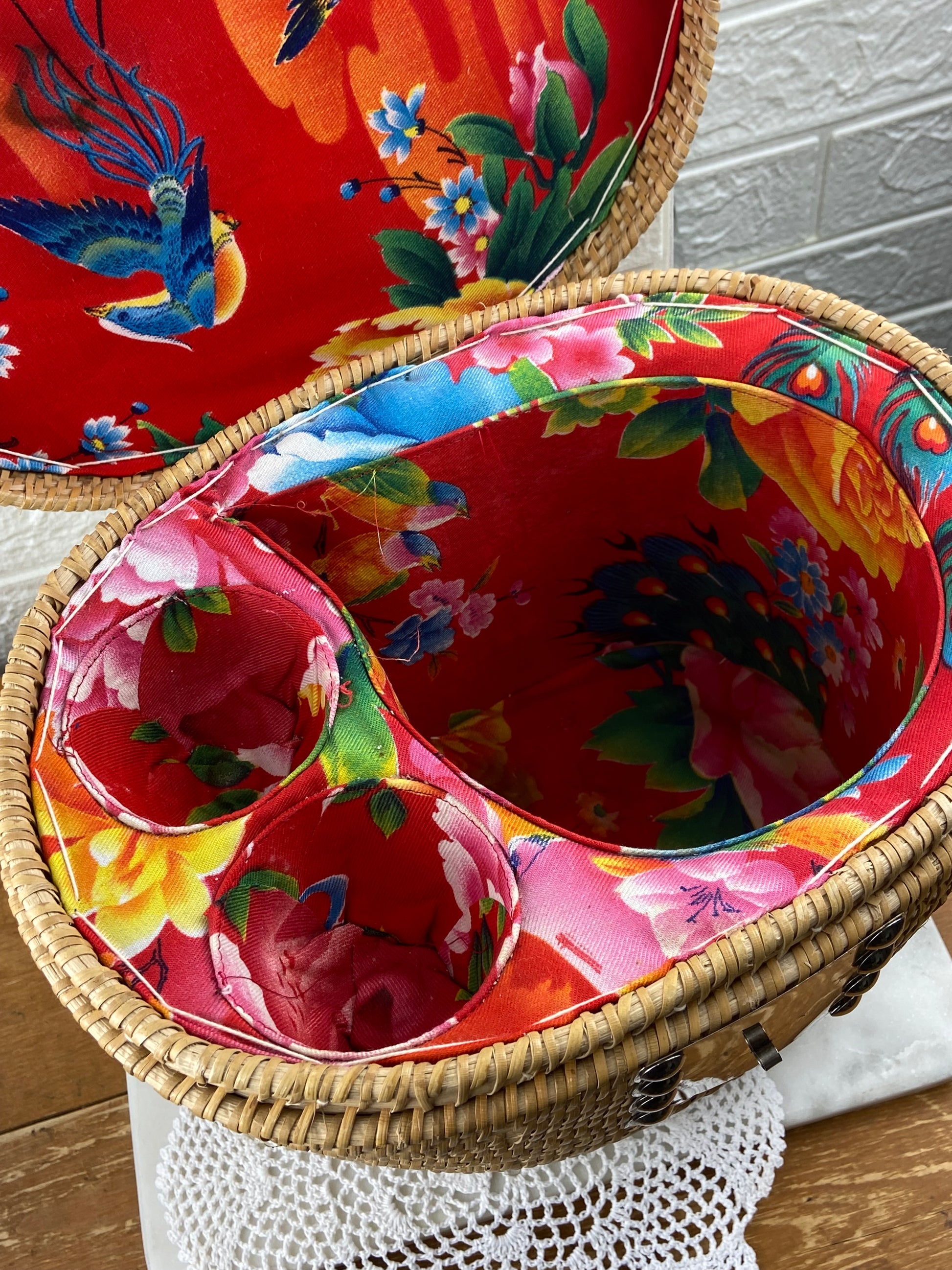 - Small tea stain inside basket lid