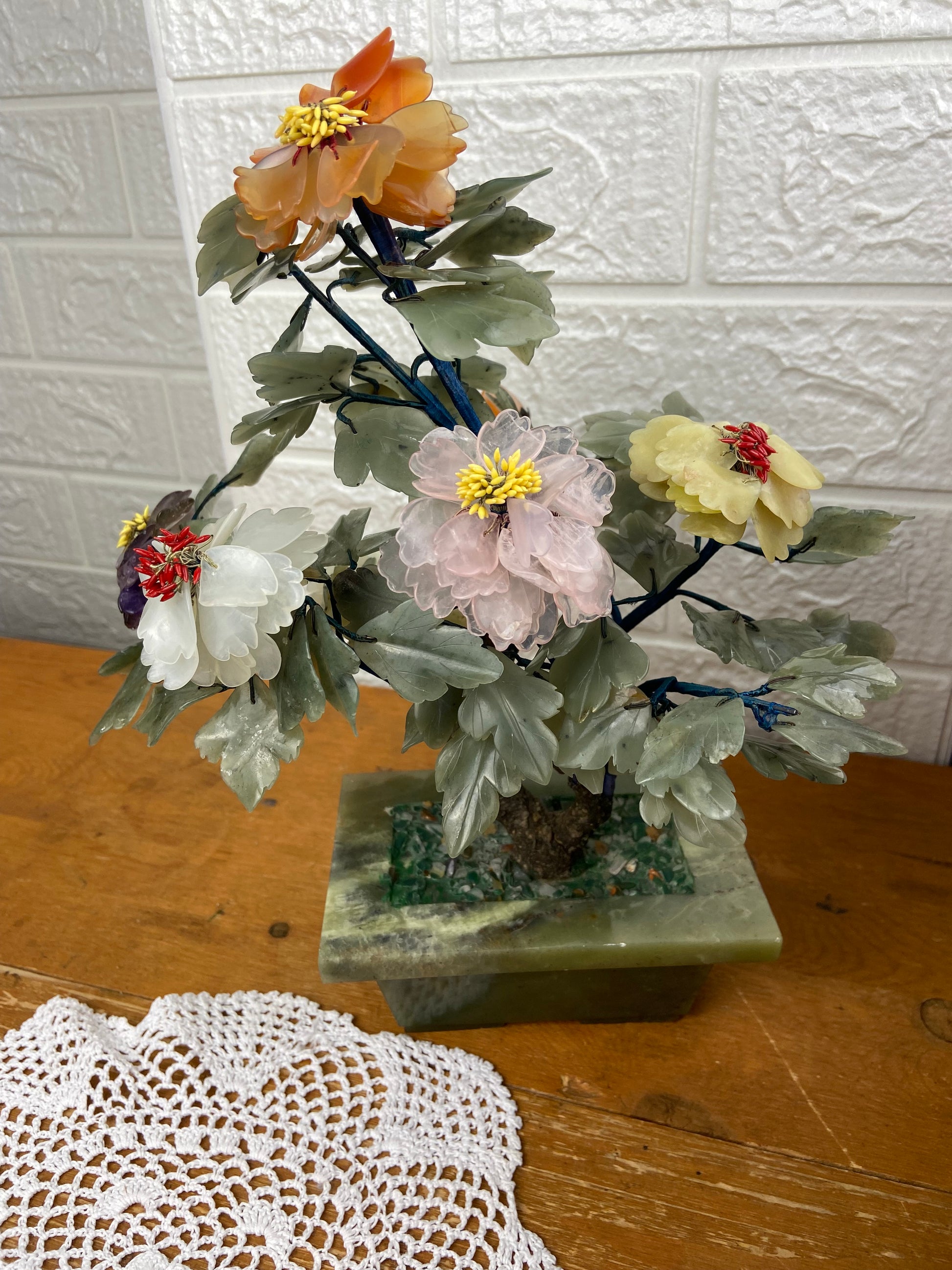 Carved Jade Bonsai Plant with Colourful Jade Flowers