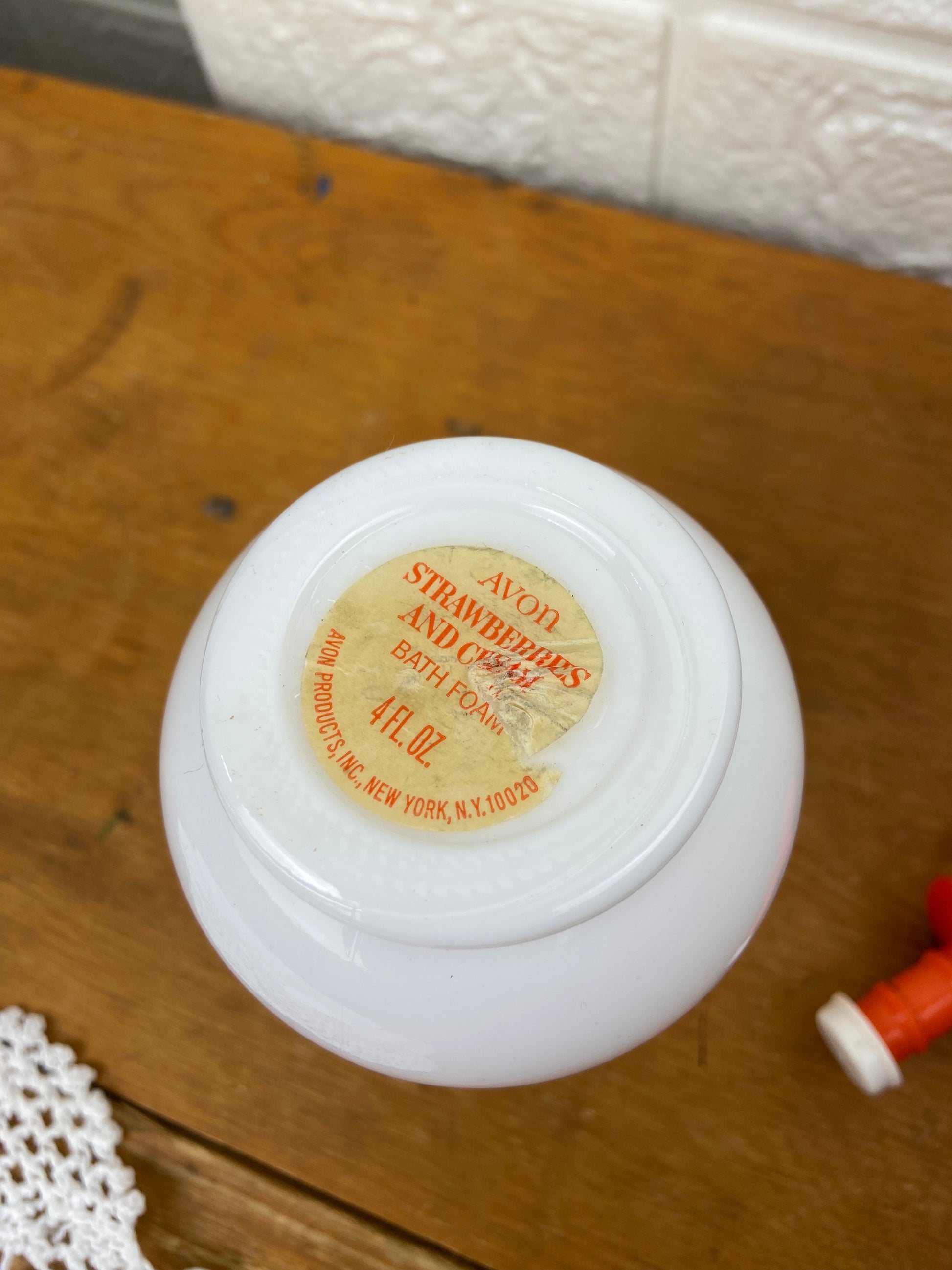 Vintage Avon | Milk Glass Pitcher; Strawberries and Cream Bath Foam (Empty)